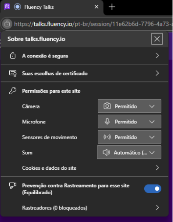 Ao final das configurações, clique no ícone de cadeado ao lado da URL do site e suas permissões devem estar assim