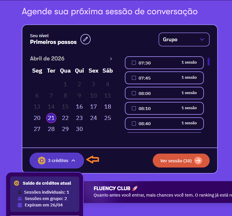 🔶Se você adquiriu somente o Fluency Talks, você pode ir até a página de planos e consultar os detalhes da oferta de contratou