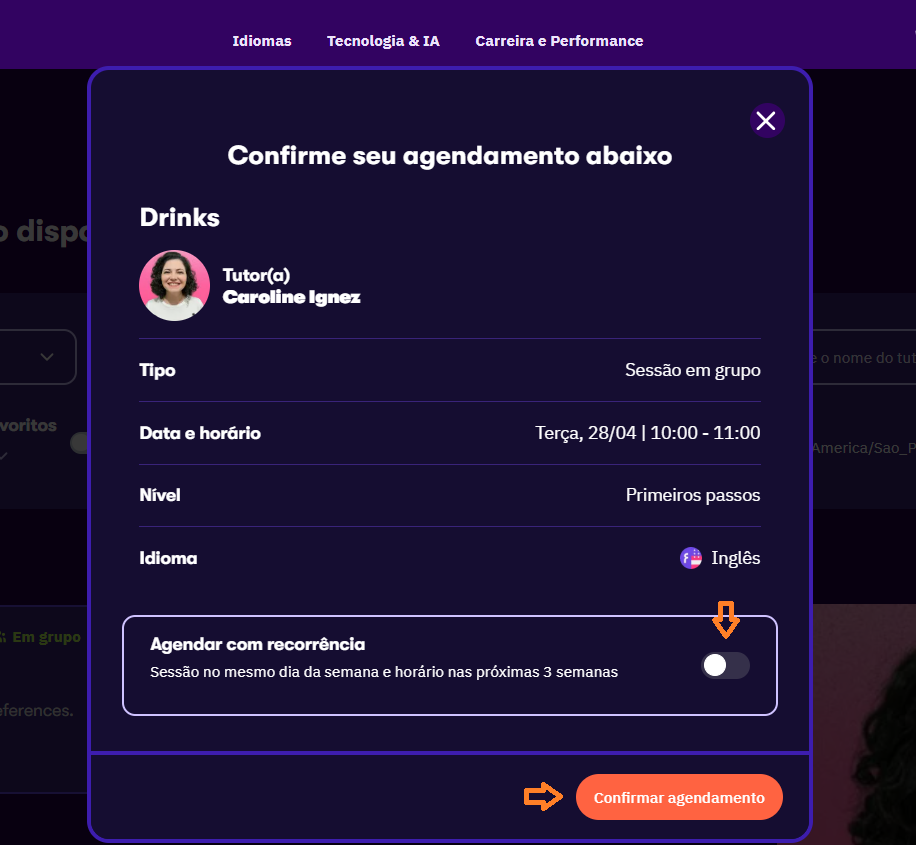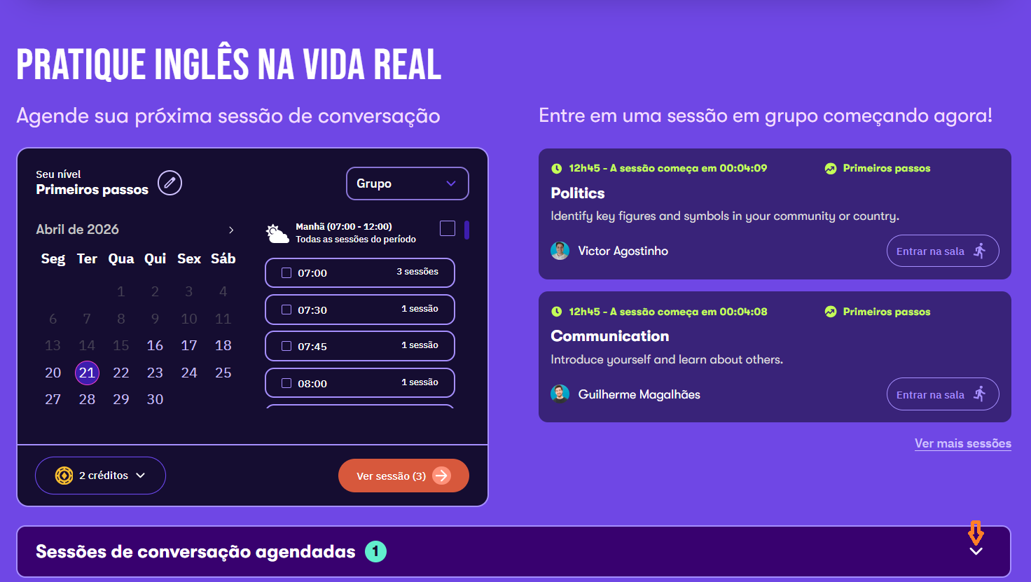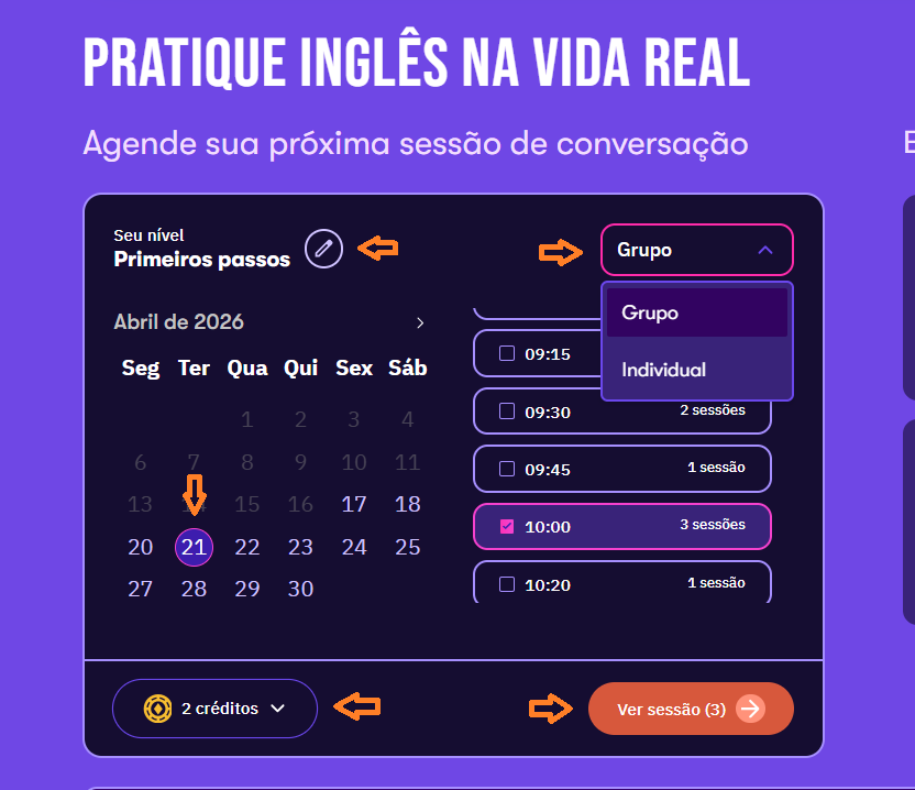 Se a sua compra incluir mentorias, você poderá utilizar os créditos recebidos com o acesso do Skills para agendar sessões individuais com especialistas em desenvolvimento profissional.